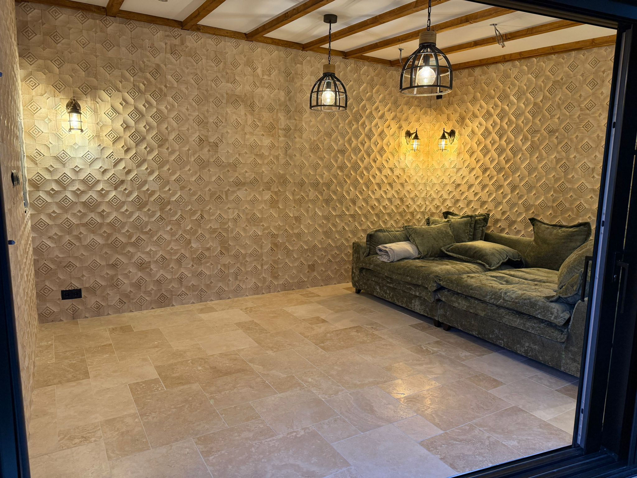 Narcisse, Light Travertine Cross Cut and Mosaic Orchid stones were used in the private villa project.